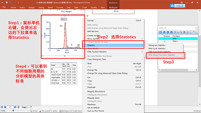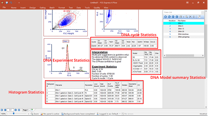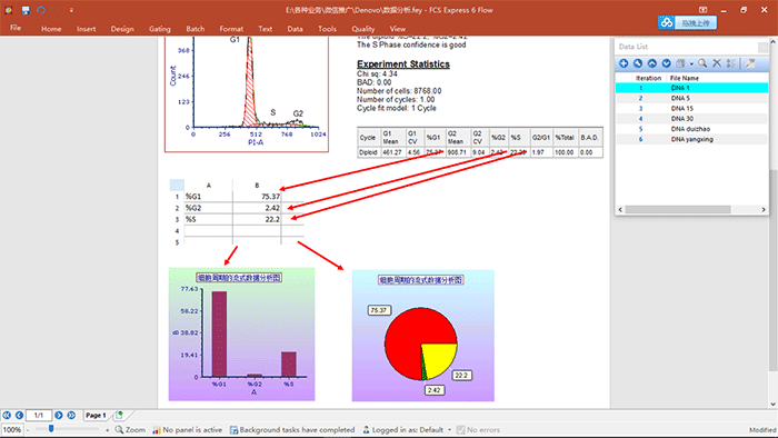 演示內容:細胞周期數據的分析,關于細胞周期各個參數的調用,統計學圖表的建立