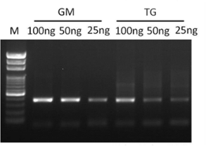使用GeneMark PCR Master Mix ll和供應商TG的相關產品擴增不同樣品濃度的斑馬魚基因組DNA