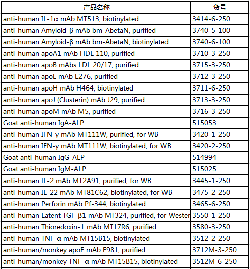 而今天小達君主要給大家介紹一下Mabtech另外一條產品線---抗體