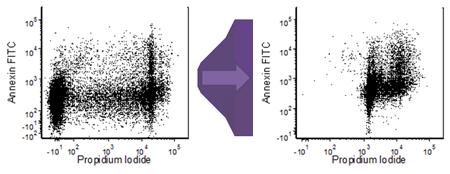 流式細胞分析時,樣本細胞中一般都含有一定量的死細胞,通過一定的方法可以減少樣本中死細胞的比例,但是完全去除樣本中的死細胞幾乎是不可能的。但流式分析的目標(biāo)為活細胞,因此流式分析時將死細胞當(dāng)作活細胞來分析,會嚴(yán)重影響流式分析的結(jié)果,通常可以選擇熒光染料來標(biāo)記區(qū)分死活細胞的方法,下面介紹一些流式分析時區(qū)分死細胞和活細胞的簡單方法。